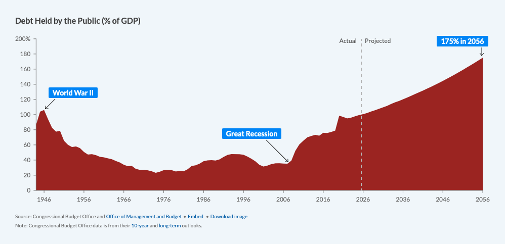We are in uncharted waters as the national debt has never been this high in peacetime. It’s now above where it was when we were fighting the Germans and Japanese for our survival as a republic.